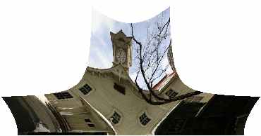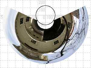 100 OPTION ARITHMETIC NATIVE 130 SET COLOR MODE "NATIVE" 140 GLOAD "tokeidai.JPG" 150 ASK PIXEL SIZE (1,0;0,1)a,b 160 DIM c(a,b) 170 ASK PIXEL ARRAY (0,1) c 180 ! c(1,1)に左上端,c(a,b)に右下端の画素が入る。 190 CLEAR 200 SET bitmap SIZE 801, 801 210 SET WINDOW -400,400,-400,400 220 SET POINT STYLE 1 230 FOR y=0 TO 400 240 FOR x=-400 TO 400 250 LET r=SQR(x^2+y^2)/2 260 IF r<>0 THEN LET t=ANGLE(x,y)*2-PI/2 280 LET i=ROUND(1/2 + a/2 + r*COS(t), 0) ! 左端 1, 右端 a 290 LET j=ROUND(1/2 + b/2 - r*SIN(t), 0) ! 上端 1,下端 b 300 IF 1<=i AND i<=a AND 1<=j AND j<=b THEN 310 SET POINT COLOR c(i,j) 320 PLOT POINTS:x,y 330 END IF 350 NEXT x 360 NEXT y 370 END