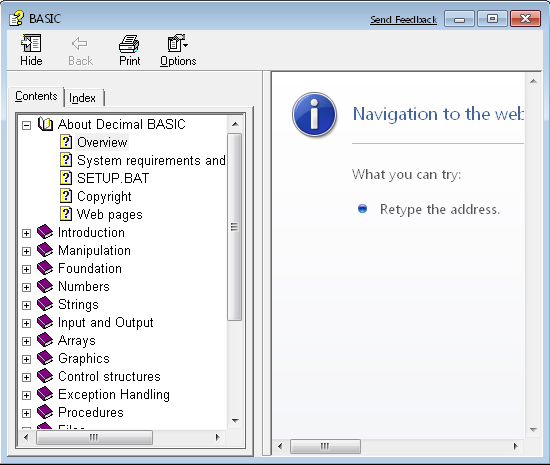 If a vacuous help window as shown below appears when you click the help icon or the help menu, exit BASIC and follow the procedure mentioned below.