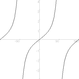 100 OPTION ANGLE DEGREES 110 DEF f(x)=TAN(x) 120 SET WINDOW -180,180,-4,4 130 DRAW AXES(90,1) 140 FOR x=-180 TO 180 150 WHEN EXCEPTION IN 160 PLOT LINES: x,f(x); 170 USE 180 PLOT LINES 190 END WHEN 200 NEXT x 210 END